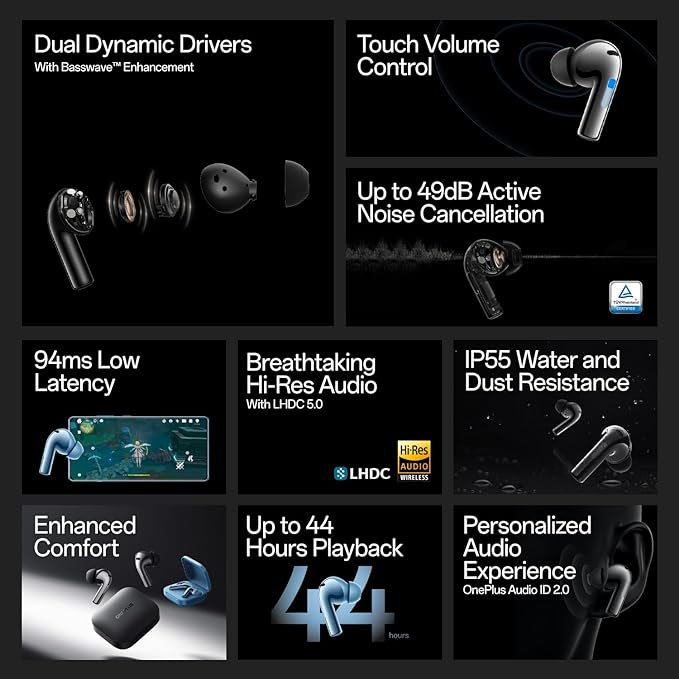 OnePlus Buds 3 in Ear TWS Bluetooth Earbuds with Upto 49dB Smart Adaptive Noise Cancellation,Hi-Res