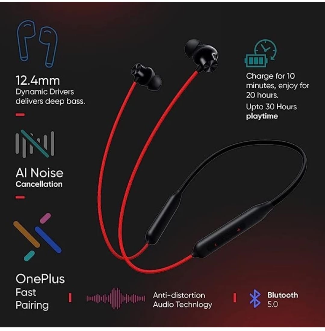 OnePlus Bullets Wireless Z2 Bluetooth Headset (Acoustic Red, In the Ear)