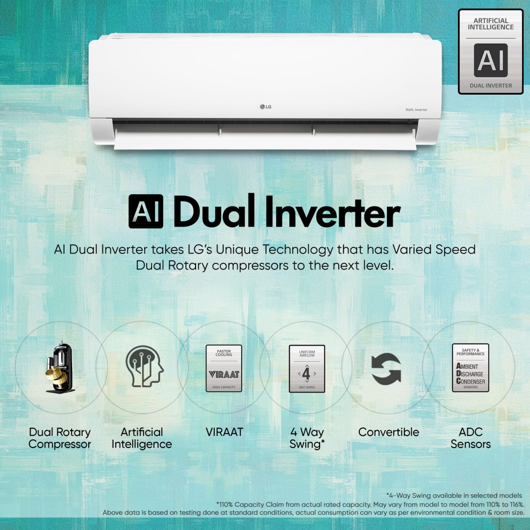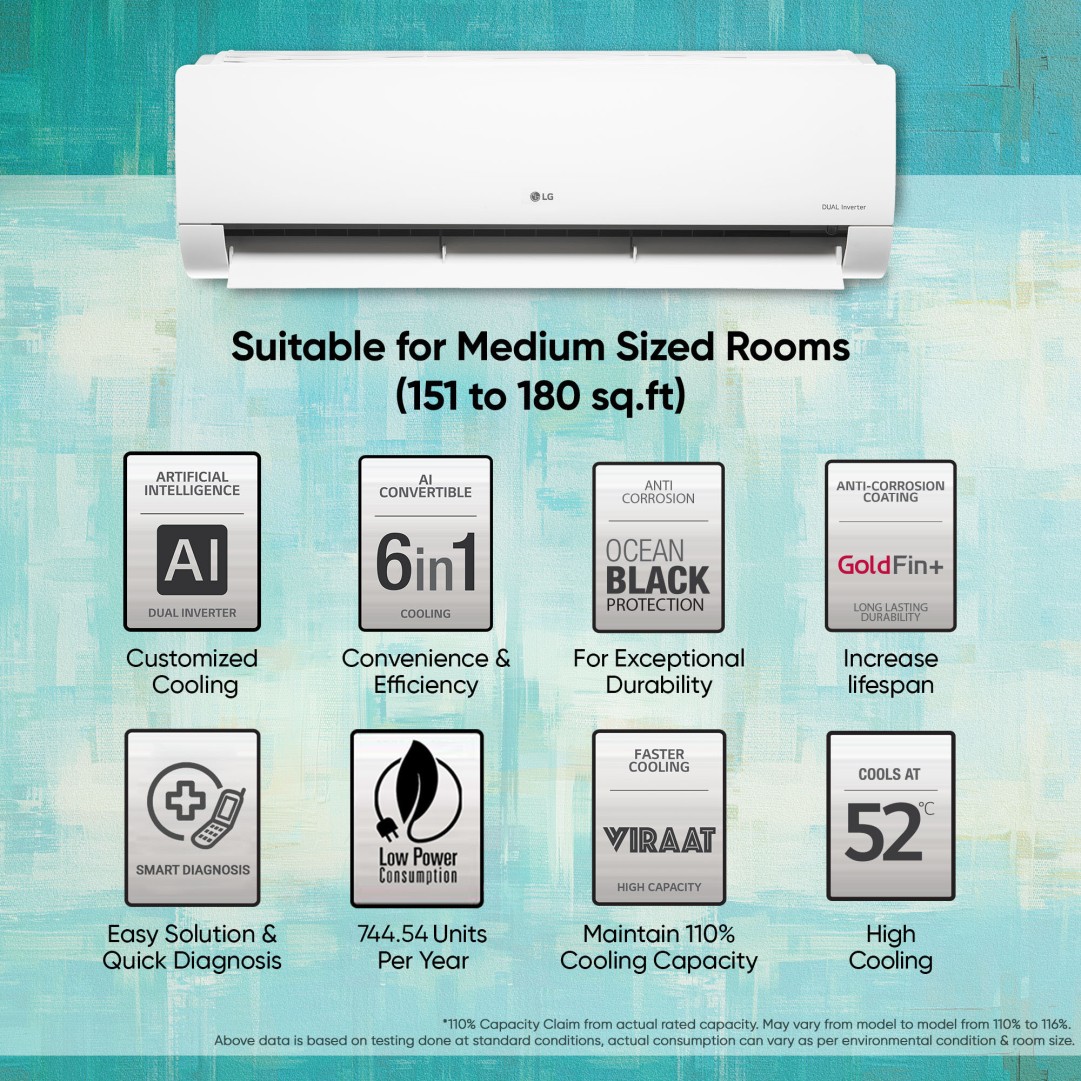 LG AI Convertible 6-in-1 Cooling 2024 Model 1.5 Ton 5 Star Split Dual Inverter 4 Way Swing, HD Filter with Anti-Virus Protection, VIRAAT Mode AD